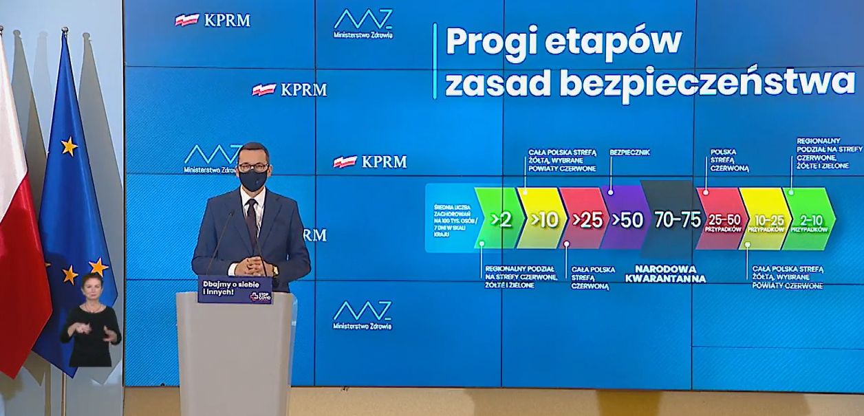 Jeśli w Polsce będzie więcej niż 50 przypadków na 100 tys. obywateli, to zostanie wprowadzony lockdown. Jeśli będzie to 70-75 przypadków na 100 tys., to kolejnym etapem jest narodowa kwarantanna, czyli m.in. zakaz przemieszczania się.