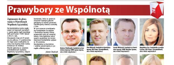 Wyniki ogłosimy w ostatnim przedwyborczym wydaniu Wspólnoty Łęczyńskiej. Zdjęcie kandydata, który w powiecie otrzymał najwięcej głosów pokażemy na stronie pierwszej. Opublikujemy również rozmowę z nim.