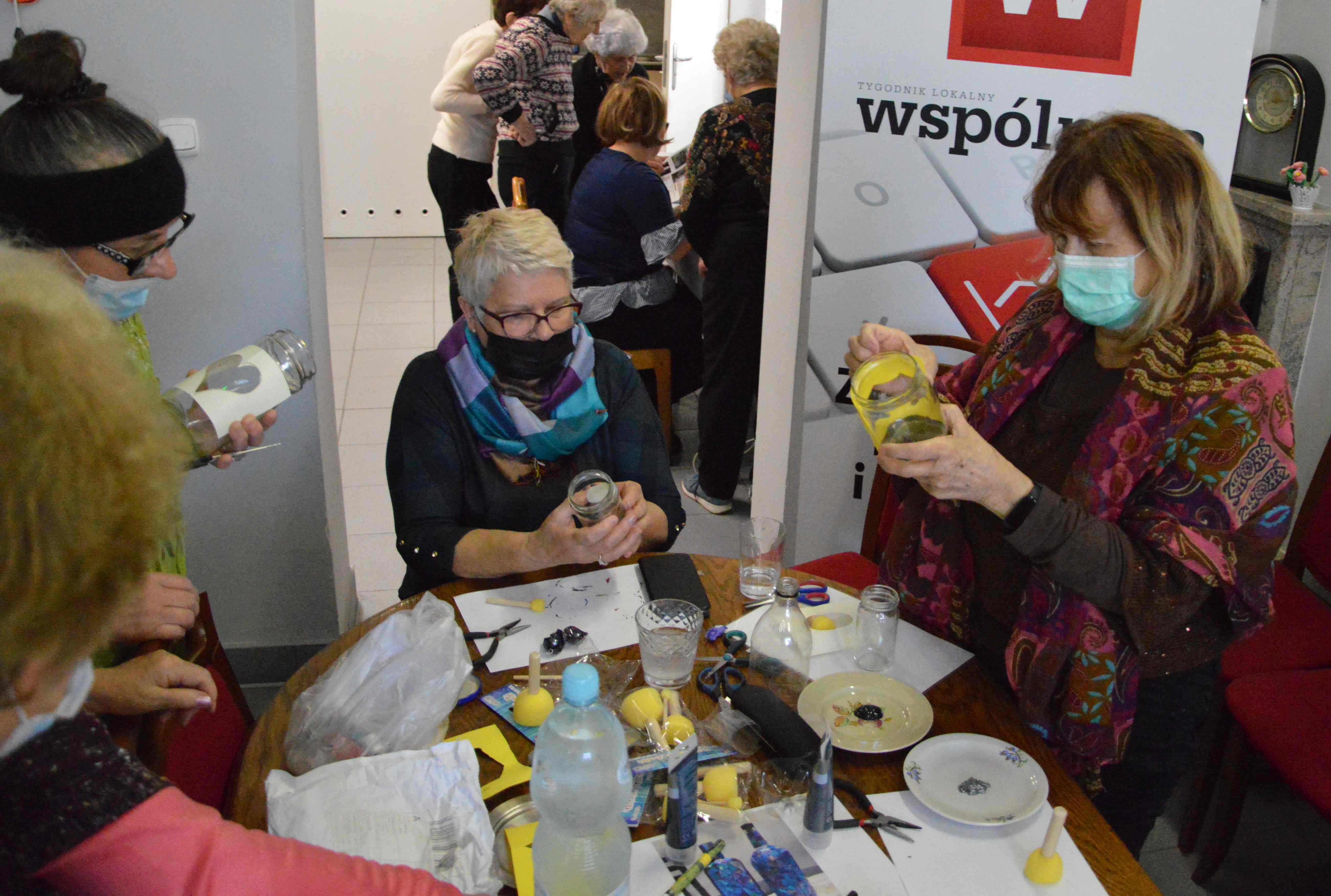 To nie wszystko. Podczas warsztatów udało im się dać nowe życie pustym szklanym słoikom. Pomalowane odpowiednimi farbami i ozdobione autorskimi wzorami stały się pojemnikami na... różności: kawę, ciastka czy długopisy. Najlepszą pracą uczestniczki warsztatów uznały kolczyki wykonane przez Teresę Kucharczyk - to jej rękodzieło zostało zgłoszone do konkursu, w ramach którego komisja wybierze najciekawsze.