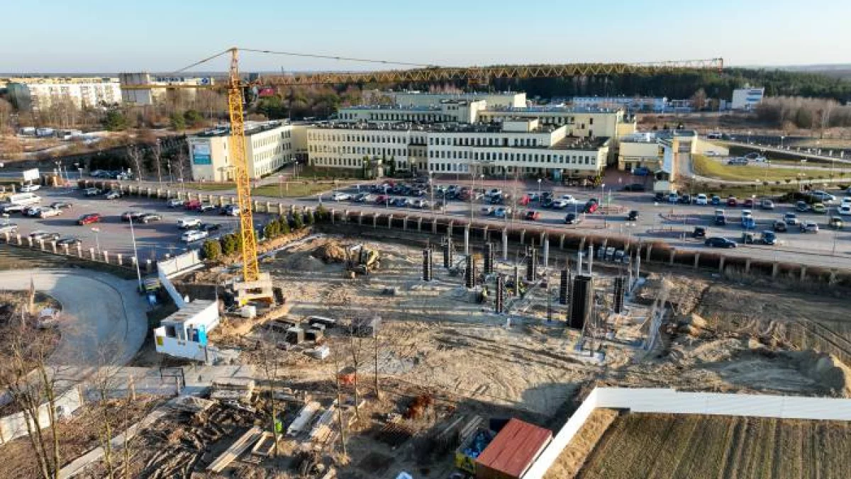 Inwestycja rozpoczęła się kilka tygodni temu. Trudno nie zauważyć ogrodzonego placu budowy, wyrastających konstrukcji stalowych i górującego na wszystkim wielkiego dźwigu. Powstanie tu jednopiętrowy, wolnostojący budynek o pow. 2,5 tys. mkw. Inwestorem jest SPZOZ w Łęcznej.