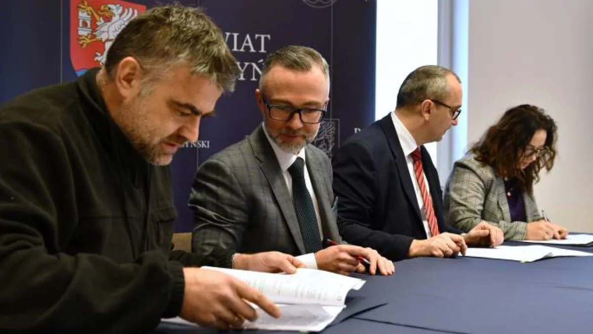 Umowę podpisali starosta łęczyński Łukasz Reszka, wicestarosta Szymon Czech oraz skarbnik powiatu Wioletta Wachewicz. Wykonawcą zadania będzie Przedsiębiorstwo Budowy Dróg i Mostów sp. z o.o., które reprezentował Robert Świtka.