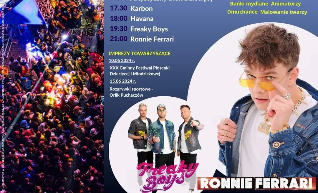 Informacje łęczyńskieFreaky Boys i Ronnie Ferrari zagrają na Letnim Party w Puchaczowie.
