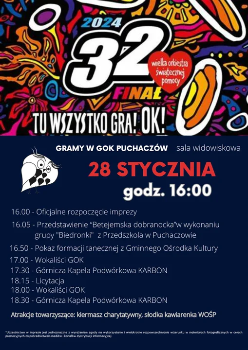 16.05 - przedstawienie "Betlejemska dobranocka" w wykonaniu grupy Biedronki z Przedszkola w Puchaczowie