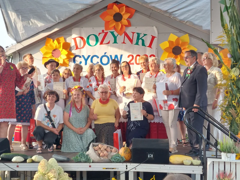 - Za dobre zbiory dziękowali wraz z nimi samorząd oraz zaproszeni goście. Były konkursy, koncerty i degustacje, a wszystko przy prawdziwie letniej pogodzie. Główną część uroczystości niedzielnych rozpoczęła msza w intencji rolników oraz poświęcenie wieńców dożynkowych. Po zakończeniu liturgii korowód przeszedł na plac Gminnego Targowiska „Mój Rynek” w dożynkowym korowodzie – informuje Gminny Dom Kultury w Cycowie.