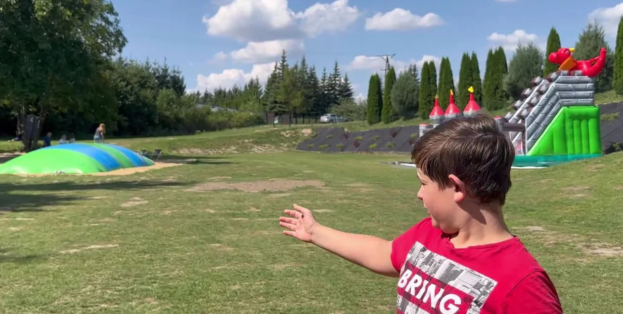 Jest tam więc blisko stumetrowa trasa osiatkowanego parku linowego, 25-metrowa zjeżdżalnia pontonowa z rolkami napędzającymi, tyrolka, dmuchany zamek i poducha do skakania.