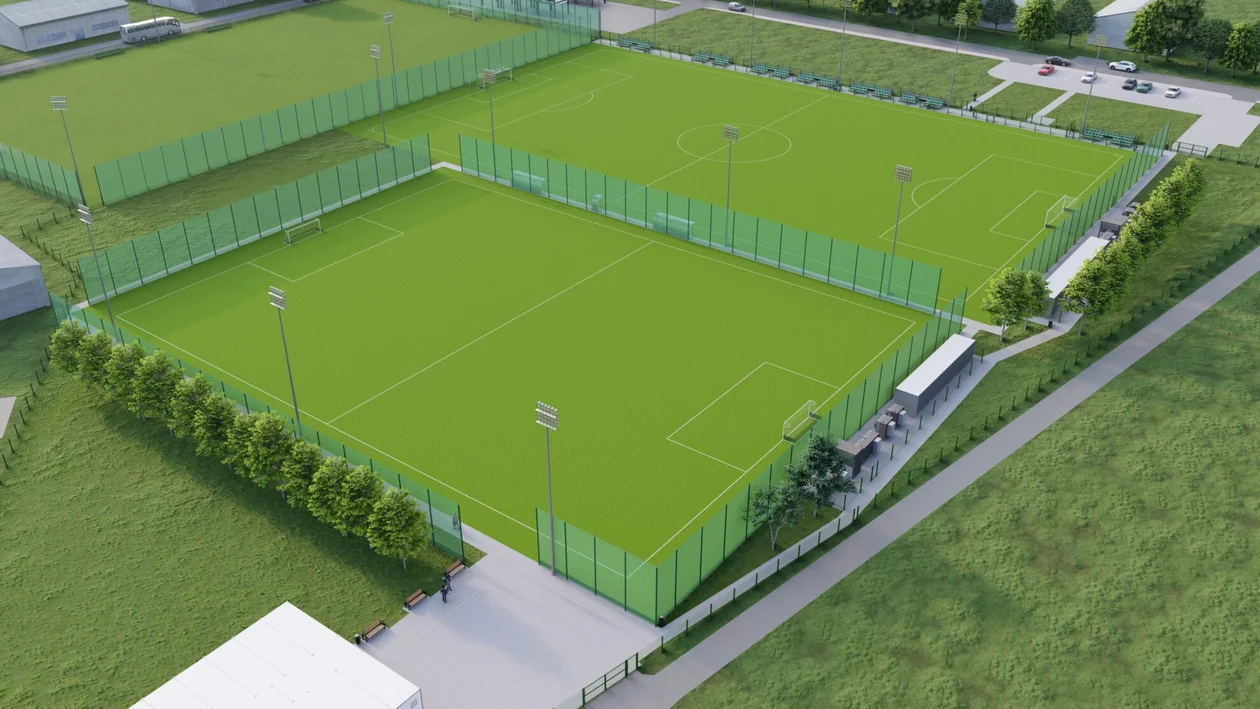 Cała inwestycja zakłada budowę dwóch boisk ze sztuczną murawą - jednego pełnowymiarowego, drugiego mniejszego do rozgrywek młodzieżowych. Oprócz tego obok boisk mają stanąć kontenerowe szatnie.