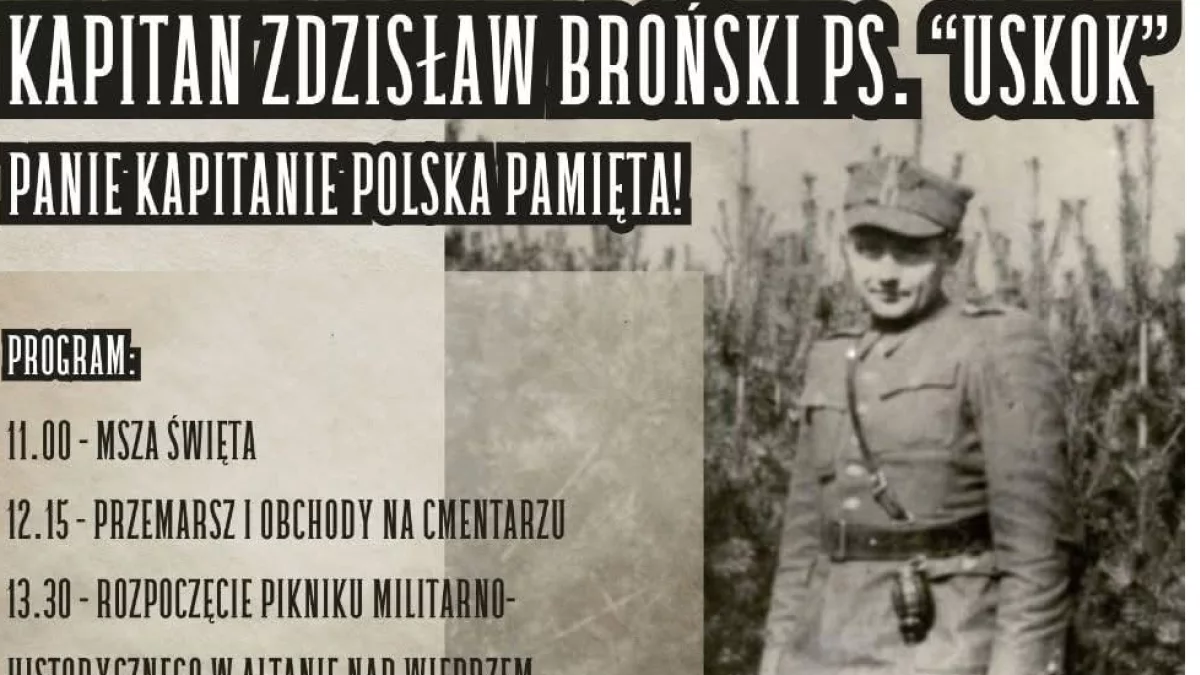 Fundacja Pamięci Bohaterów Lubelszczyzny oraz FG Patria Łęczna zapraszają mieszkańców regionu i wszystkich patriotów na uroczyste obchody 76. rocznicy śmierci kapitana Zdzisława Brońskiego ps. „Uskok” – jednego z najbardziej zasłużonych żołnierzy podziemia niepodległościowego.