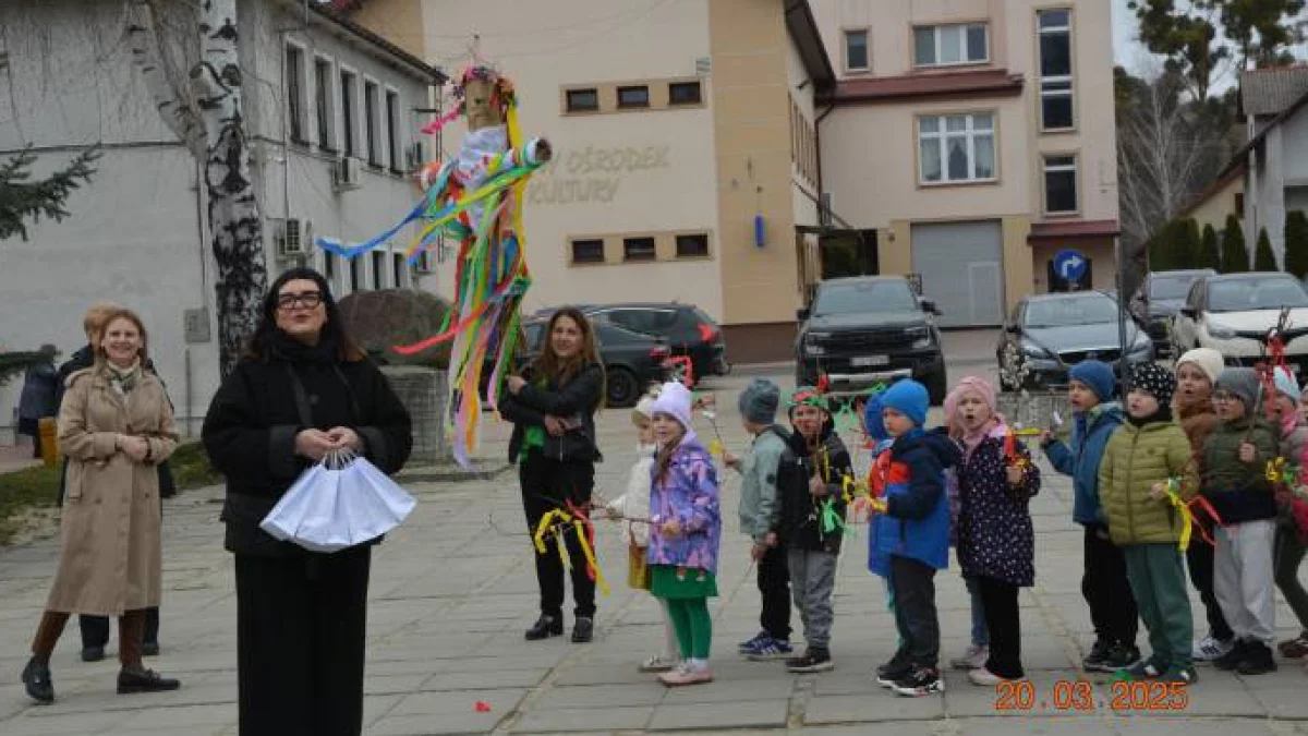 Przedszkolaki z Marzanną na czele przemaszerowały ulicami miejscowości, niosąc ze sobą radosną nowinę o odejściu zimy i budzącej się do życia przyrodzie.