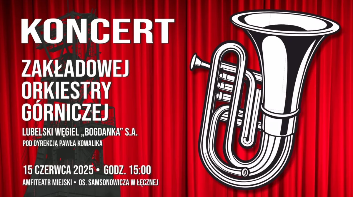Informacje łęczyńskieJuż w niedzielę 15 czerwca o godzinie 15:00 w amfiteatrze miejskim na osiedlu Samsonowicza odbędzie się koncert Zakładowej Orkiestry Górniczej Lubelskiego Węgla „Bogdanka”, pod dyrekcją Pawła Kowalika.