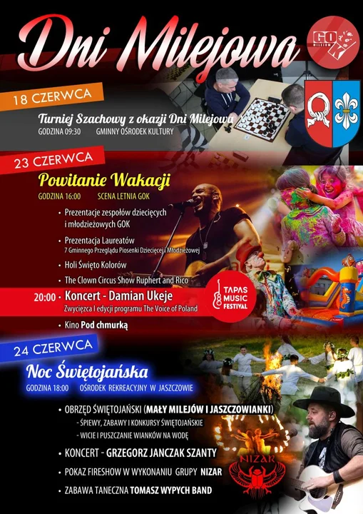 Informacje łęczyńskieDamian Ukeje będzie gwiazdą tegorocznych Dni Milejowa. Jego koncert odbędzie się w piątek, 23 czerwca na terenie Gminnego Ośrodka Kultury w Milejowie. Następnego dnia organizatorzy Dni Milejowa zapraszają do Jaszczowa na Noc Świętojańską. Zobacz program imprezy.