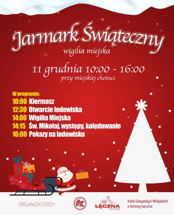 O godz. 14 rozpocznie się wspólne świętowanie, kolędowanie, dzielenie opłatkiem. Chwilę później na placu pojawi się Święty Mikołaj z łakociami i razem z nim zostanie uruchomione oświetlenie na choince. Nie zabraknie też widowisk wokalnych i tanecznych. Wystąpią m. in. dzieci z przedszkoli, studio wokalne i podopieczni Centrum Kultury.