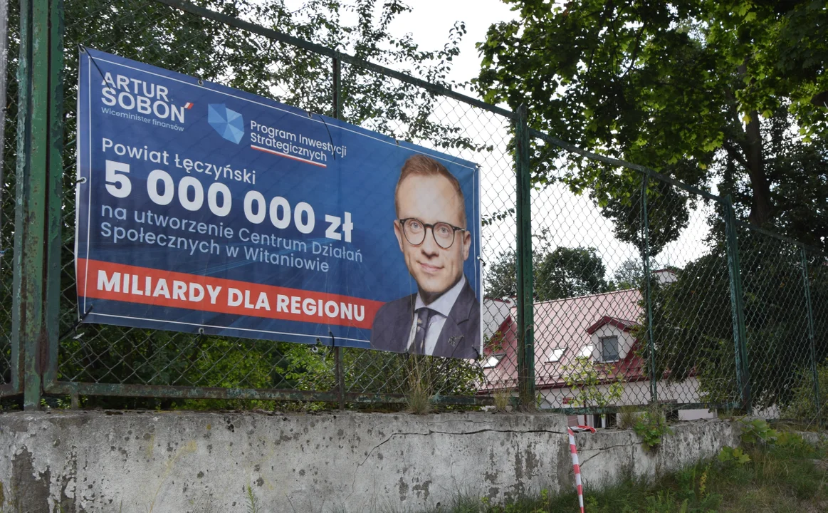 Mieszkańcy mówili, że gdyby znajdowały się na nich jedynie informacje o dotacjach przyznanych samorządowi w ramach Polskiego Ładu, nie byłoby problemu. Jednak pierwsze, co rzucało się w oczy, to uśmiechnięta twarz Artura Sobonia, posła Prawa i Sprawiedliwości, czyli tej samej partii, do której należy starosta łęczyński Krzysztof Niewiadomski.
