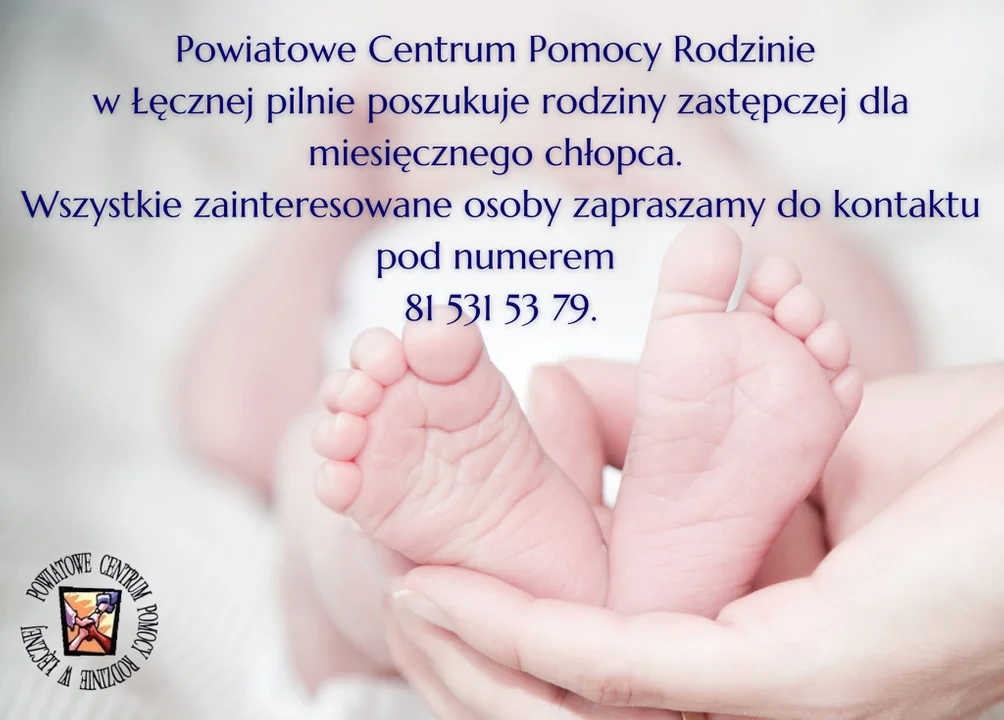 Informacje łęczyńskiePowiatowe Centrum Pomocy Rodzinie w Łęcznej pilnie poszukuje rodziny zastępczej dla miesięcznego chłopca.