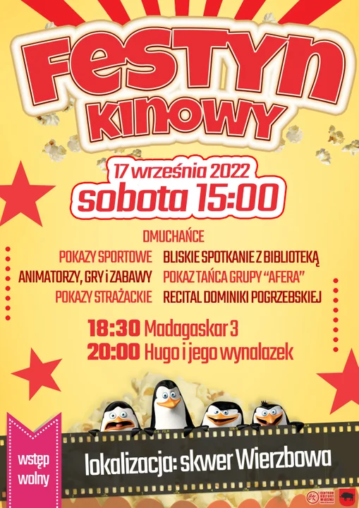 Zwieńczeniem festynu będzie kino plenerowe z pokazem dwóch lubianych filmów: „Madagaskar 3” oraz „Hugo i jego wynalazek”.
