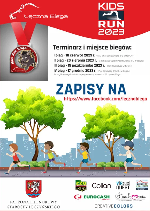 Łęczna Biega organizuje zawody dla dzieci Kids Run 2023.