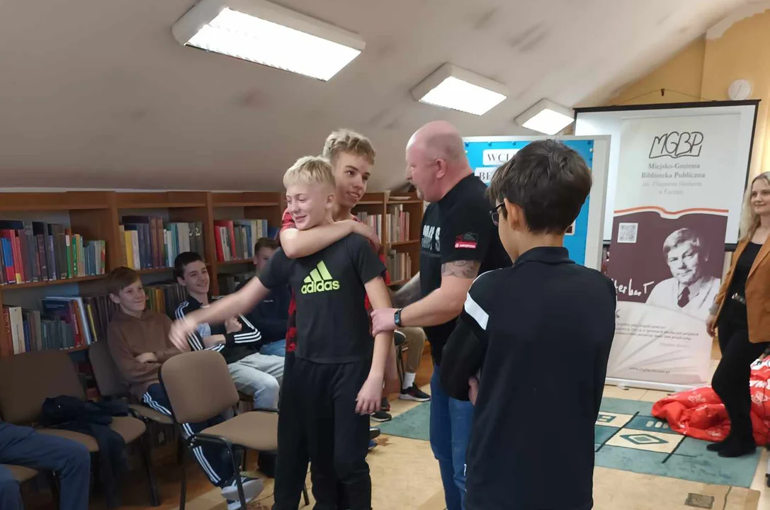 Krzysztof Zadrożny posiada czarny pas w aikido i niebieski w Krav Maga, jest też wieloletnim pracownikiem branży ochroniarskiej, a także stałym czytelnikiem Miejsko-Gminnej Biblioteki Publicznej w Łęcznej. I właśnie w tym miejscu Krzysztof Zadrożny poprowadził warsztaty samoobrony dla młodzieży. Młodzi ludzie wyszli z biblioteki może troszkę poobijani, ale też zachwyceni, bo z takimi umiejętnościami mogą poczuć się bezpieczniej.