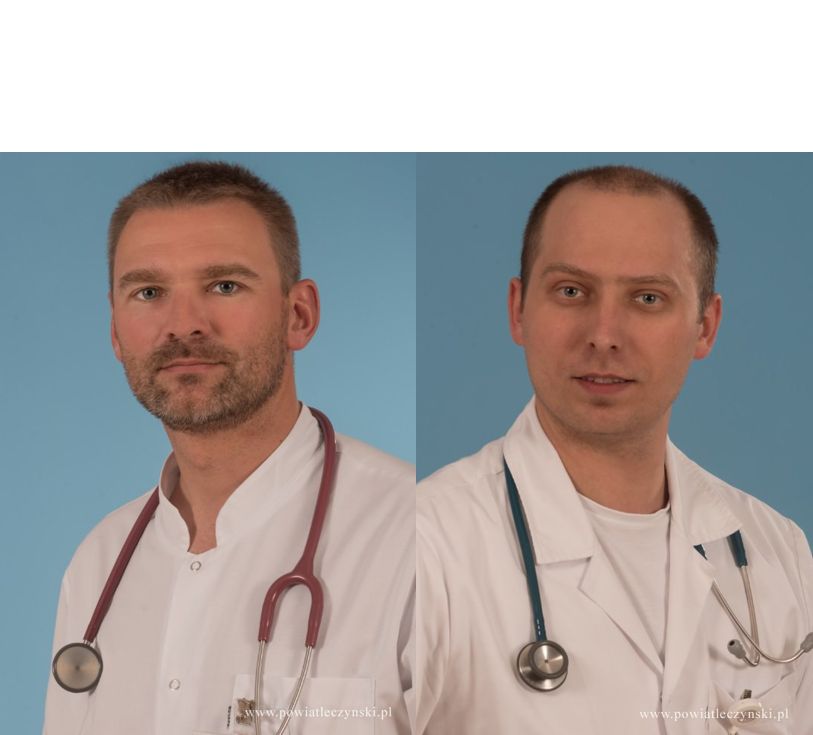 Pacjentów zakażonych koronawirusem leczyli m.in. odznaczeni właśnie Marcin Skórski (na zdjęciu po lewej stronie), lekarz koordynujący oddziału chorób wewnętrznych i lekarz z tego oddziału Krzysztof Cichoń (po prawej).