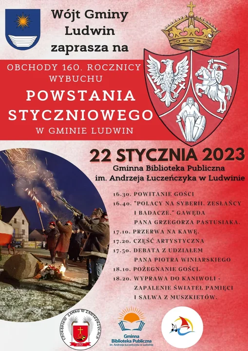Informacje łęczyńskieDzisiejsze obchody rozpoczną się o godz. 15 na cmentarzu parafialnym w Łęcznej, gdzie odbędzie się modlitwa przy mogile m. in. Bogusława Ejtminowicza, dowódcy, który zginął w czasie walk powstańczych. Później o powstaniu styczniowym m. in. na ziemi łęczyńskiej będzie można posłuchać w bibliotece w Ludwinie - szczegóły na plakacie.