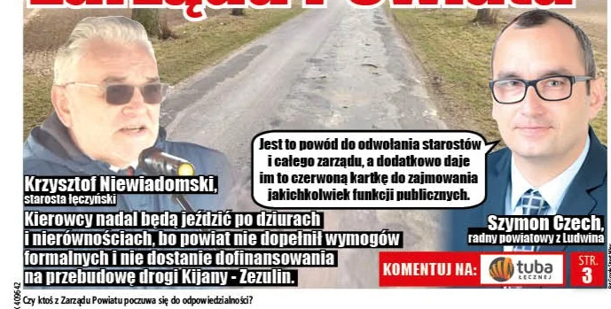 Co na to radni powiatowi z gmin, przez które przebiega ta droga? Suchej nitki na zarządzie nie zostawia Szymon Czech, radny z Ludwina.
