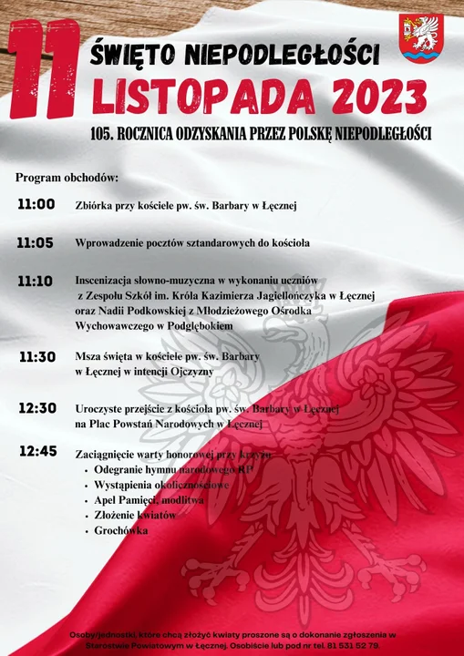 Osoby i instytucje, które chcą złożyć kwiaty proszone są o dokonanie zgłoszenia w Starostwie Powiatowym w Łęcznej. Osobiście lub pod nr. tel. 815315279.