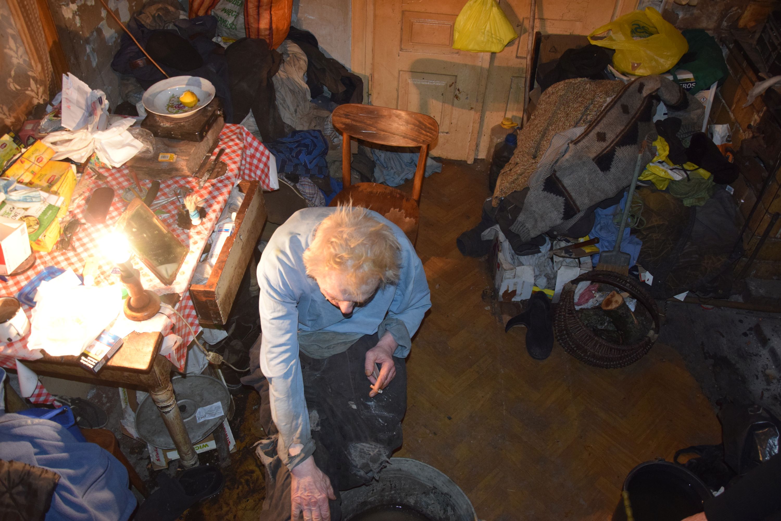 Gdy na początku lutego odwiedziliśmy pana Zbyszka w jego domu, pokazywał nam gnijącą ranę na palcach stopy. Mężczyzna nie ma emerytury, żyje w zrujnowanym drewnianym nieocieplonym domu, używa tylko jednego pomieszczenia, nie ma wody, brakuje mu sił, by dorzucać do ognia (opał ostatnio przywiozła mu gmina).