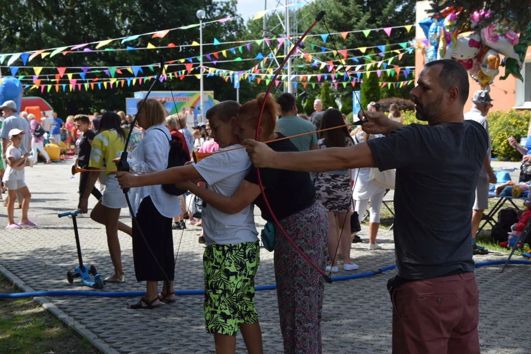 Tuż po rozpoczęciu imprezy, czyli po godz. 14 na miejscu zastaliśmy m. in. dzieci bawiące się na dwóch dużych dmuchańcach i jednym mniejszym, podczas gdy ich rodzice i dziadkowie ustawiali się w kolejce po watę cukrową i popcorn dla swoich pociech.