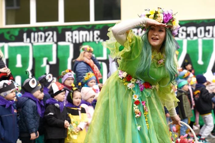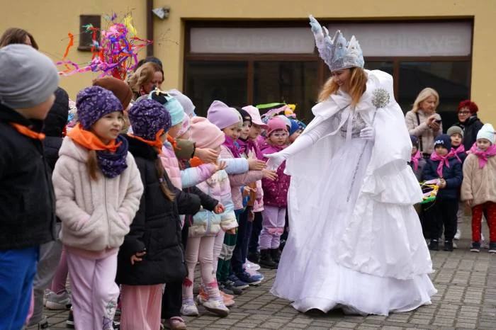 Niezwykle efektownym i radosnym elementem uroczystości było symboliczne pożegnanie zimy, w którym aktywny udział wzięli druhowie z OSP KSRG w Łęcznej. Strażacy, którzy na co dzień dbają o nasze wspólne bezpieczeństwo, tym razem odegrali rolę strażników tradycji. Dzięki ich pomocy symboliczna "Wiosna" została bezpiecznie dostarczona na plac przed budynkiem Centrum Kultury, co wzbudziło ogromny entuzjazm wśród przedszkolaków.