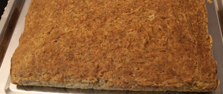 W zależności od blaszki, w której jest wypiekany, grubość po upieczeniu ok. 3-4 cm