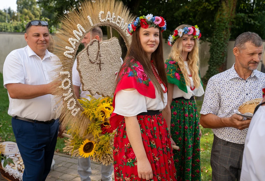Burmistrz Leszek Włodarski i proboszcz Józef Majchrzak podziękowali rolnikom za trud pracy i nieoceniony dar - życiodajny chleb, który symbolizuje hojność natury, ducha wspólnoty i ciężkiej pracy.