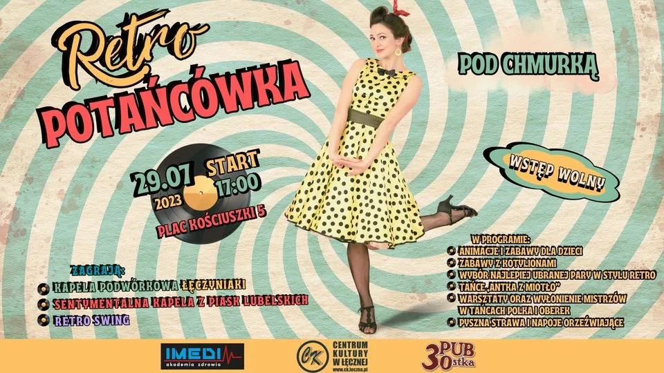Plac Kościuszki 5 w sobotę zamieni się w parkiet w stylu „retro”. Dlaczego? Bo odbędzie się „Potańcówka pod chmurką”. Zaczynamy od godzinie 17.