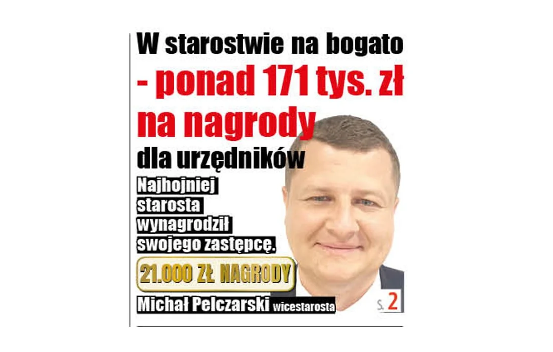 1. Michał Pelczarski, wicestarosta – 21.000 zł brutto, 14.432 zł netto;