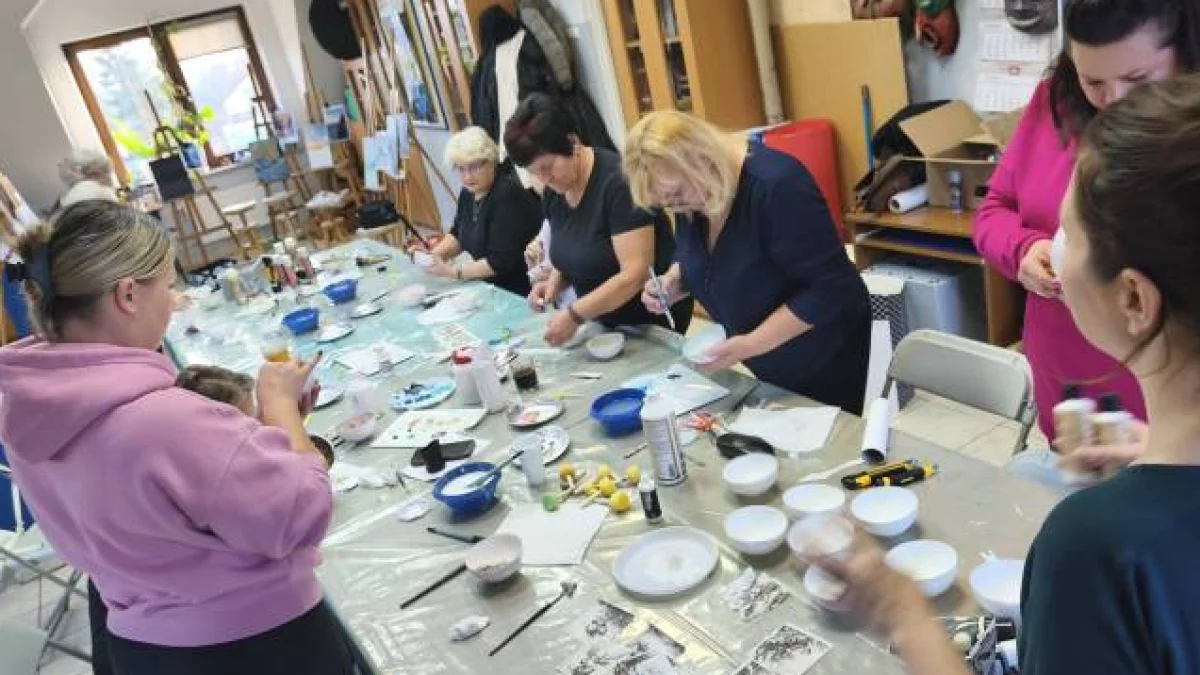 Uczestniczki z dużym zaangażowaniem wykonywały świąteczne bombki, dzieląc się pomysłami, inspiracjami i dobrym nastrojem. Była to okazja nie tylko do rozwijania artystycznych pasji, lecz także do rozmów, integracji i pielęgnowania lokalnych tradycji związanych z przygotowaniami do świąt.