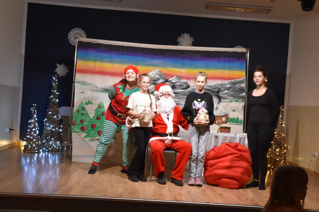 Jednym z głównych punktów programu był spektakl „Świąteczna zagadka skrzata Tadka” w wykonaniu Teatru Maska z Krakowa. Dzieci z zachwytem śledziły losy bohaterów, a świąteczna fabuła wciągnęła nawet dorosłych. Niespodzianką wieczoru było pojawienie się Świętego Mikołaja, który wręczył prezenty wszystkim małym uczestnikom wydarzenia.