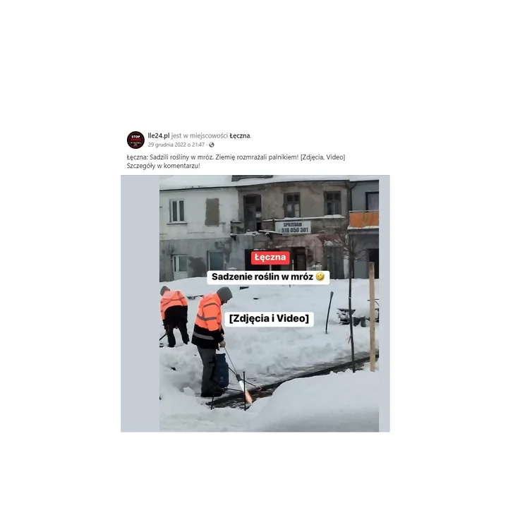 "Jeśli myśleliście, że zamarznięta ziemia może stanowić jakikolwiek problem przy wykonywaniu nowych nasadzeń, byliście w błędzie. Oto fachowcy zarządzani przez ekipę Leszka Włodarskiego pokazali, że chcieć to móc! Skutą lodem ziemię zawsze można przecież rozmrozić" - napisał Bartol z lle24.