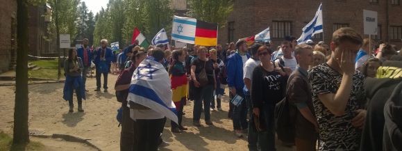 Uczestnicy wyruszyli spod historycznej obozowej bramy głównej z napisem „Arbeit macht frei”. Sygnałem do wymarszu był dźwięk szofaru, baraniego rogu pasterskiego, którego Żydzi używają podczas ważnych świąt. Kilka tysięcy osób maszerowało do byłego Auschwitz II-Birkenau, aby wejść na jego teren przez bramę główną, przez którą w 1944 r. przejeżdżały dziesiątki transportów z Żydami skazanymi na zagładę. Uczestnicy nieśli flagi krajów, z których się wywodzą. Najwięcej było barw Izraela. Wiele było również biało-czerwonych chorągwi.