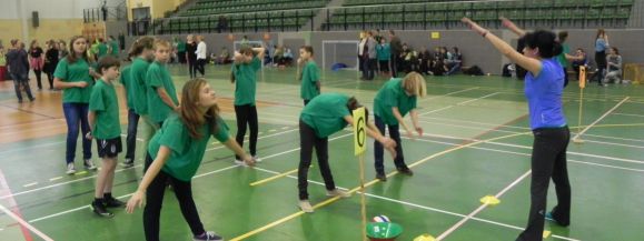 Hala przy ulicy Jaśminowej wypełniła się uczniami dziesięciu szkół, którzy próbowali swoich sił w różnych konkurencjach. Głośny doping słyszeliśmy, gdy dzieci ścigały się skacząc w workach czy szurając po podłodze gazetami przyczepionymi do butów. Były też rzuty piłką do celu, przejazdy rajderem, rzuty lotką i wiele innych konkurencji.