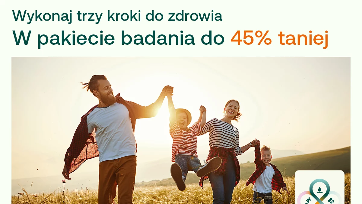 * W pakiecie badania do -45%. Suma cen badań wchodzących w skład pakietu została obliczona na podstawie stacjonarnego cennika z Warszawy.