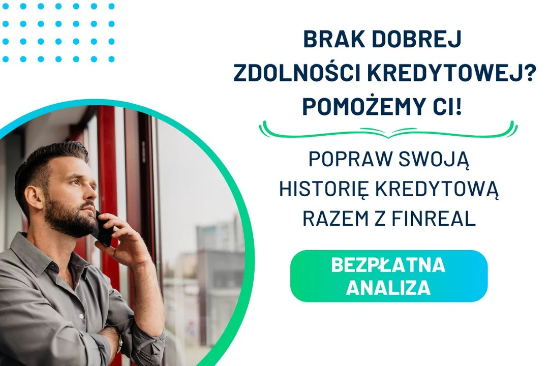 Chcesz wyjść na prostą i uzyskać upragniony kredyt? Skontaktuj się z doradcą FINREAL, aby dowiedzieć się, jak poprawić swoją zdolność kredytową i zwiększyć swoje szanse na uzyskanie finansowego wsparcia. Eksperci FINREAL są gotowi pomóc Ci znaleźć najlepsze rozwiązania, dostosowane do Twoich potrzeb.