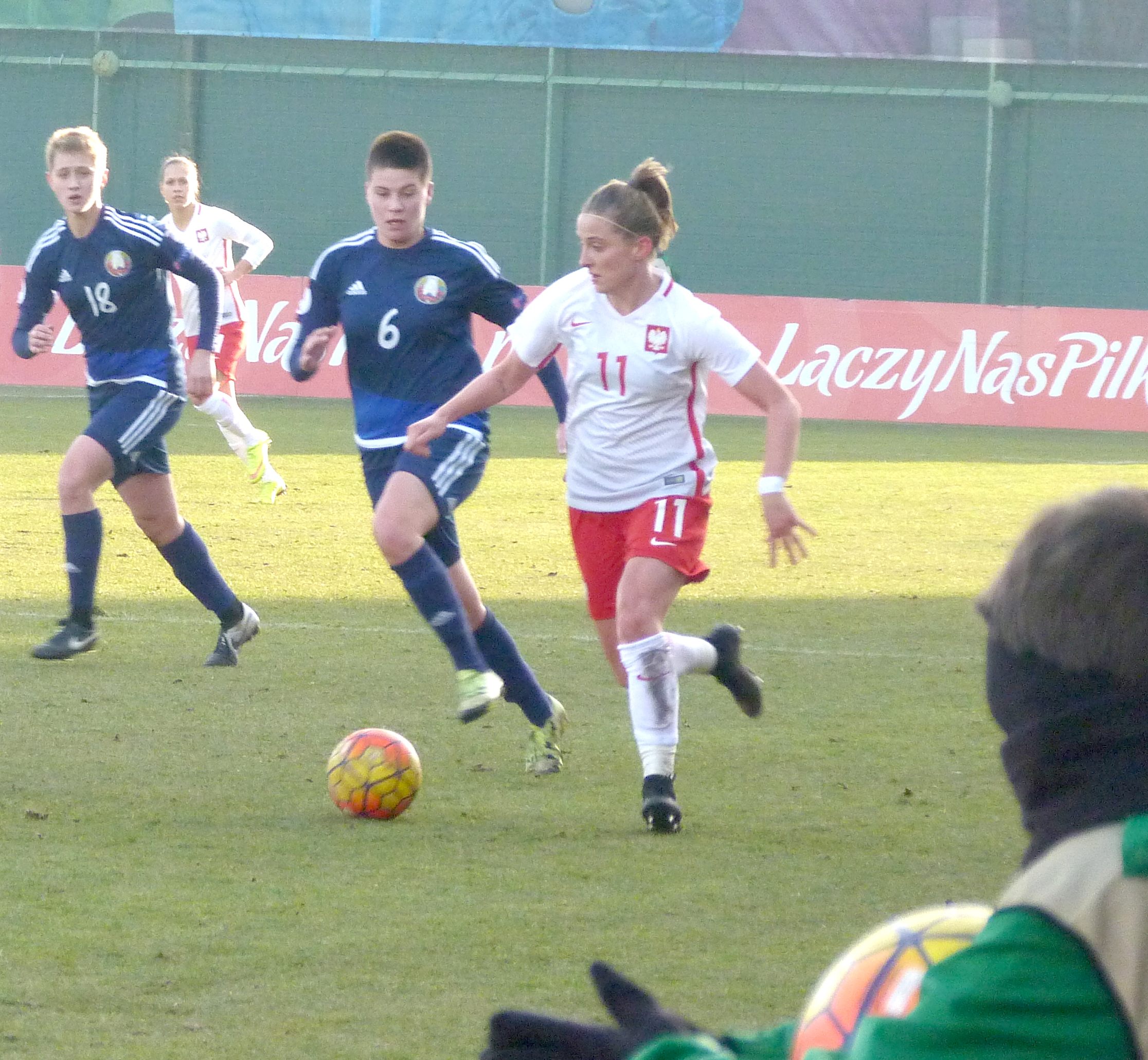 W pierwszym składzie ekipy biało-czerwonych zagrała jedna piłkarka Górnika Łęczna - skrzydłowa Ewelina Kamczyk. Zawodniczka zielono-czarnych spędziła na boisku 45 minut, w przerwie została zmieniona przez Nikol Kaletkę. Na ostatnie dziesięć minut meczu na murawie pojawiła się z kolei Nikola Karczewska, napastniczka aktualnych mistrzyń Polski. Do kadry powołane były jeszcze bramkarka Anna Palińska i pomocniczka Emilia Zdunek.