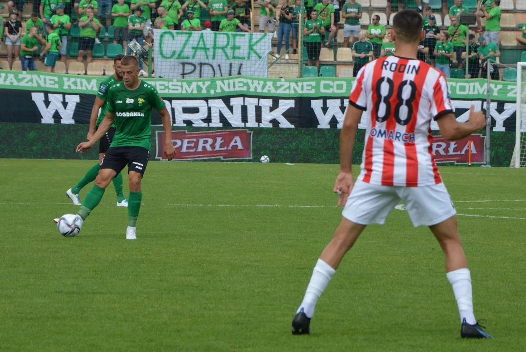 Przyjezdni napierali, ale długo brakowało im skuteczności. Trafiali w poprzeczkę, ich strzały szybowały tuż obok bramki zielono-czarnych albo dwoił się i troił Gostomski. Dopięli swego w 45. minucie, gdy na 2:1 trafił Robert Dadok. Zawodnik Górnika zamknął składną akcję zabrzan, wykorzystując podanie od Bartosza Nowaka.