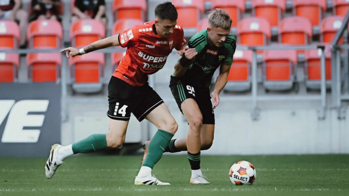 Jednak to tyszanie schodzili na przerwę z prowadzeniem. Gola do szatni strzelił w doliczonym czasie gry Jakub Tecław. 26-letni obrońca zaskoczył stojącego między słupkami Branislava Pindrocha mocnym uderzeniem z dystansu.
