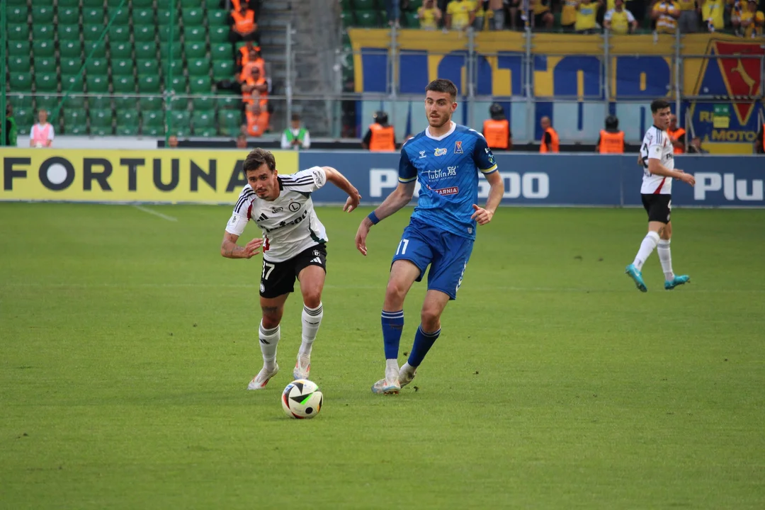 W kolejnych minutach bramkarz Motoru miał z resztą sporo pracy, bo Legia pracowała na odrobienie strat. Chorwat był jednak dobrze dysponowany, a jego koledzy z boiska starali się odgryzać rywalom. Jedna z takich sytuacji po rzucie rożnym w 23. minucie zakończyła się strzałem w słupek Samuela Mraza. Niestety w 30. minucie spotkania ani Brkić, ani obrońcy Motoru nie poradzili sobie z Bartoszem Kapustką. 14-krotny reprezentant Polski miał sporo miejsca przed polem karnym i mocnym strzałem lewą nogą wyrównał stan spotkania na 1:1. Chwilę później znów zagotowało się w "szesnastce" Motoru. Najpierw Brkić odbił uderzenie Rafała Augustyniaka, ale Stolarski zagrał ręką po dośrodkowaniu i sędzia po analizie VAR znów wskazał na rzut karny. Tym razem do piłki podszedł Paweł Wszołek i nie pomylił się z 11. metra, dając Legii prowadzenie 2:1. Takim też wynikiem zakończyła się pierwsza część spotkania.
