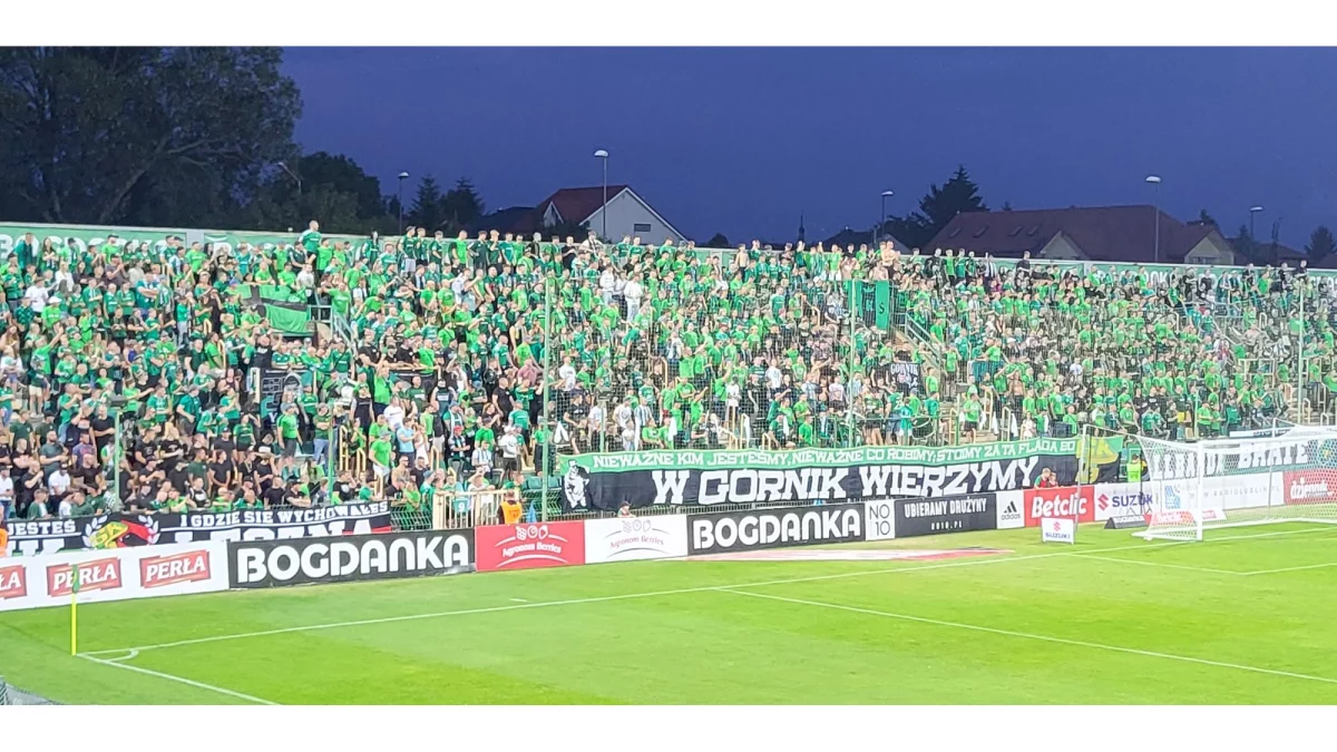 Fani zielono-czarnych wyjątkowo mobilizowali się na sobotnie spotkanie, a ich celem było zgromadzenie tysiąca kibiców na trybunie B, gdzie zasiadają najbardziej zagorzali sympatycy Górnika. I to się udało - trybuna została wypełniona niemal w całości, bowiem zasiadło na niej prawie 1250 osób. Szczelnie wypełniony przez przyjezdnych z Rzeszowa został także sektor kibiców gości.