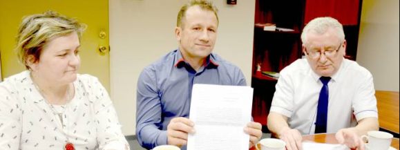 na zdjęciu: W gabinecie Krzysztofa Niewiadomskiego, starosty łęczyńskiego, z pismem do ministra - Marta Kociuba, radna RG Cyców, Adam Kawalec, sołtys Szczupaka i Bogdan Barbuziński, przewodniczący Gminnego Forum Samorządowego