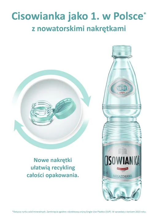 Rozwiązanie opracowane przez producenta wody Cisowianka nie tylko realizuje wymóg dyrektywy Unii Europejskiej, ale daleko wybiega poza te regulacje w zakresie znaczącego obniżenia masy nakrętki i butelki.