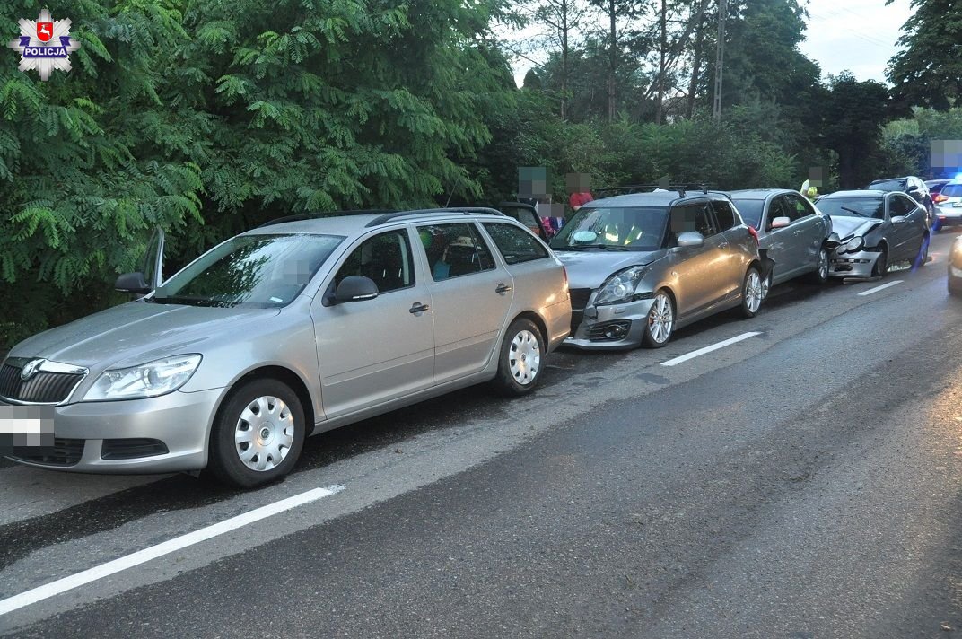 - 21-latek jadący mercedesem nie zachował bezpiecznej odległości od poprzedzającej go toyoty, w konsekwencji czego najechał na tył pojazdu. W wyniku siły uderzenia kierujący toyotą uderzył w tył suzuki, zaś suzuki zderzyło się ze skodą – informuje st. sierż. Izabela Zięba, rzeczniczka łęczyńskich policjantów.
