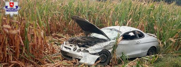 We wtorek w Trębaczowie przypadkowy świadek zauważył samochód, który zatrzymał się na dachu w kukurydzy.