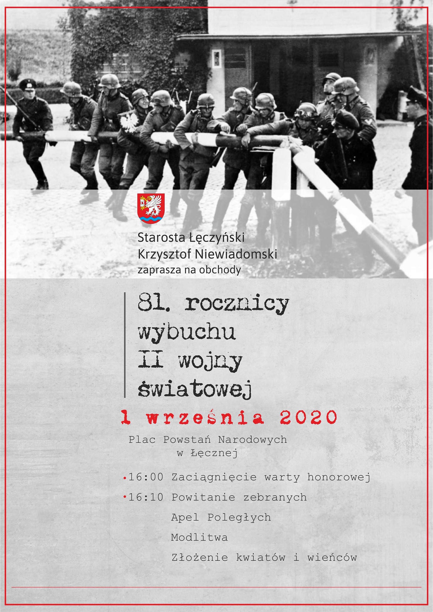 WiadomościObchody 81 rocznicy wybuchu II wojny światowej rozpoczną się we wtorek, 1 września o godz. 16 na Placu Powstań Narodowych w Łęcznej.