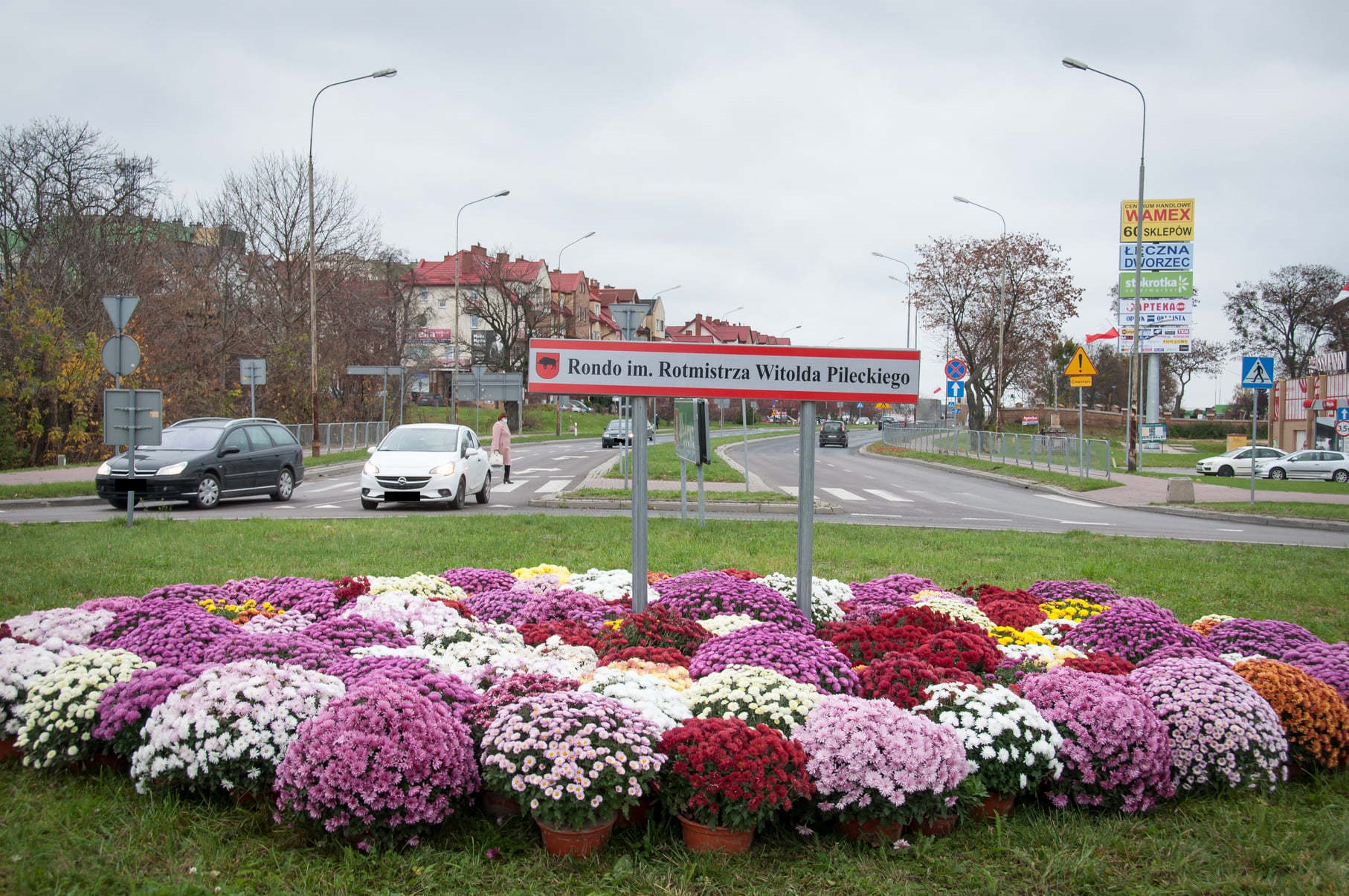 Chryzantemy zagospodarował też łęczyński ratusz. Kwiaty zdobią plac Powstań Narodowych, pomnik Tadeusza Kościuszki, okolice Urzędu Miejskiego, a także rondo im. Rotmistrza Witolda Pileckiego.