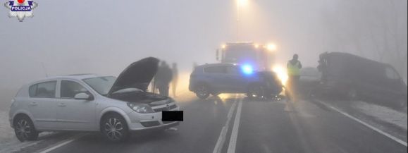 W piątkowy mglisty poranek o godz. 6 na drodze krajowej nr 82 w Zofiówce zderzyło się pięć samochodów.